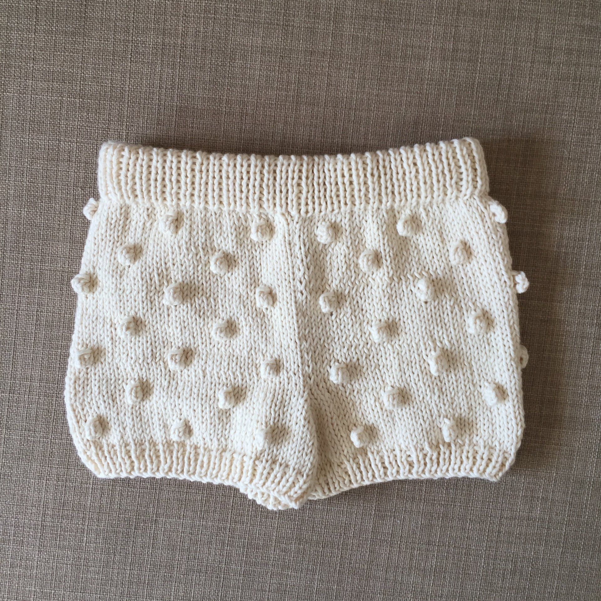 CARRIE short coolkids está tejido de abajo a arriba, primero las piernas y luego todo junto en agujas rectas. Hecho en punto bobo, con rayas de color. Cinturilla en 1x1 rib doblada a la mitad con elástico en el interior. El pantalón no tiene costuras en los costados.